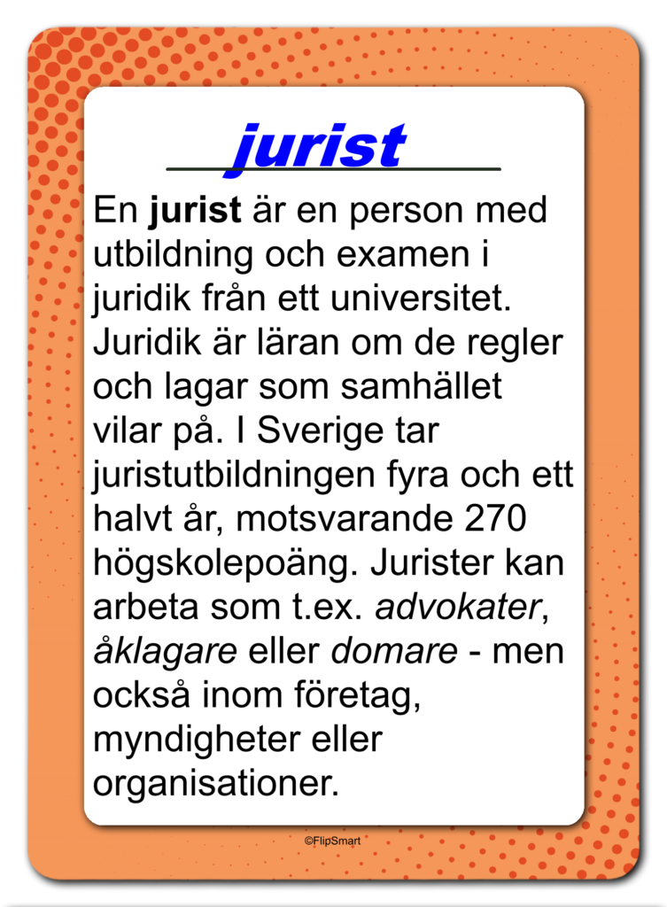 👮♀️ Samhällskunskap, lag och rätt, 54 laminerade kort av högsta kvalité med färgtryck på båda sidor.